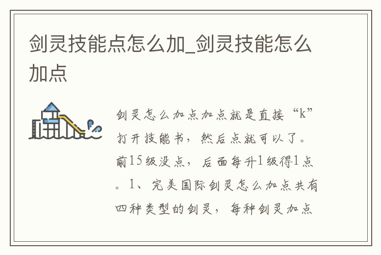 劍靈怎么加點加點就是直接“k”打開技能書,然后點就可以了。前15級沒點,后面每升1級得1點。1、完美國際劍靈怎么加點共有四種類型的劍靈,每種劍靈加點方式不同,分別如下:靈血劍靈加點即加體,其他屬性點“隨武器加”,能拿武器穿裝備即可;力劍靈加點即加力量,其他屬性點“隨裝備走”,加力量顯示攻擊就會高,初期可以這樣加點。2、劍靈力士技能怎么加點劍靈力士技能