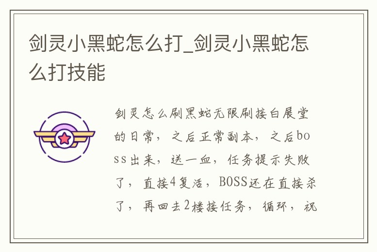 劍靈小黑蛇怎么打_劍靈小黑蛇怎么打技能