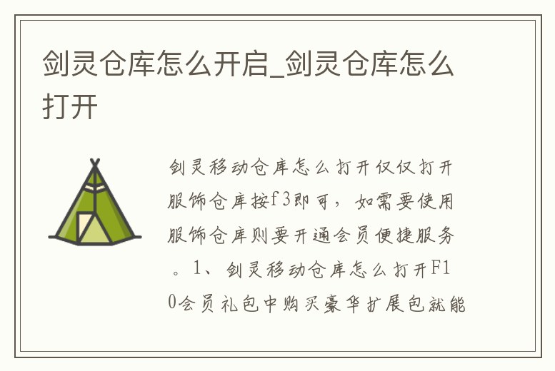 劍靈倉庫怎么開啟_劍靈倉庫怎么打開