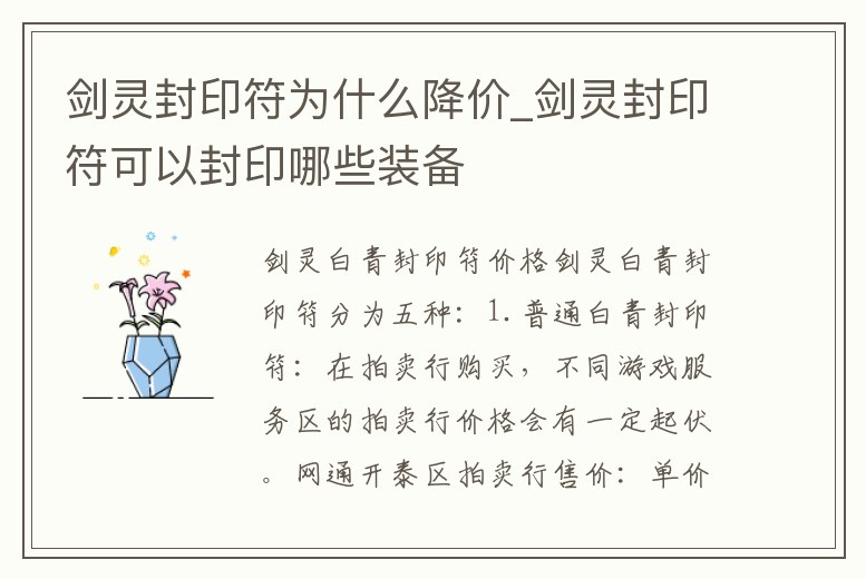 劍靈封印符為什么降價_劍靈封印符可以封印哪些裝備