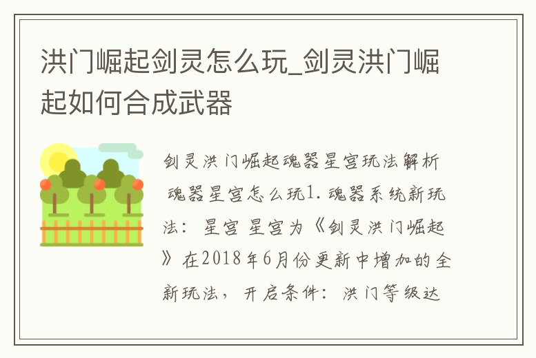 洪門崛起劍靈怎么玩_劍靈洪門崛起如何合成武器