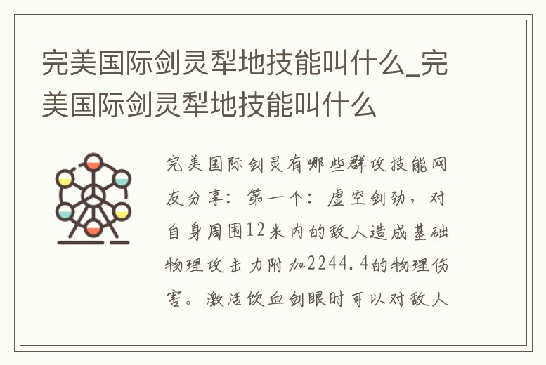 完美國際劍靈犁地技能叫什么_完美國際劍靈犁地技能叫什么