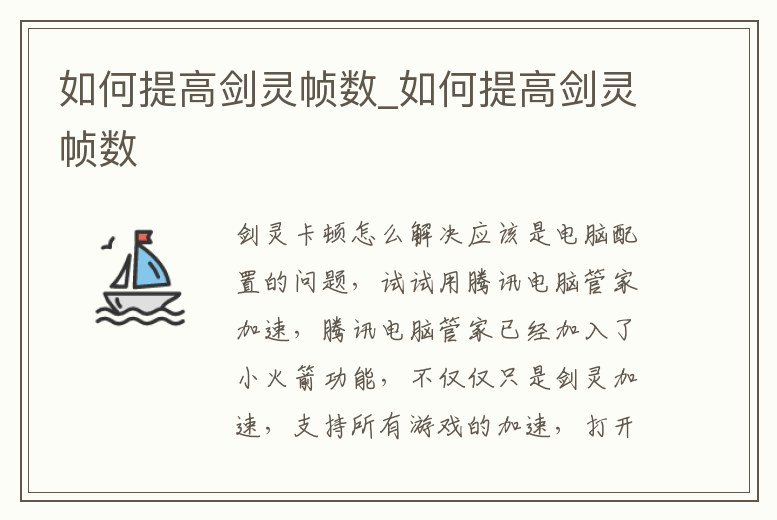 如何提高劍靈幀數(shù)_如何提高劍靈幀數(shù)