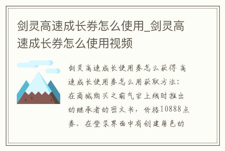 劍靈高速成長券怎么使用_劍靈高速成長券怎么使用視頻