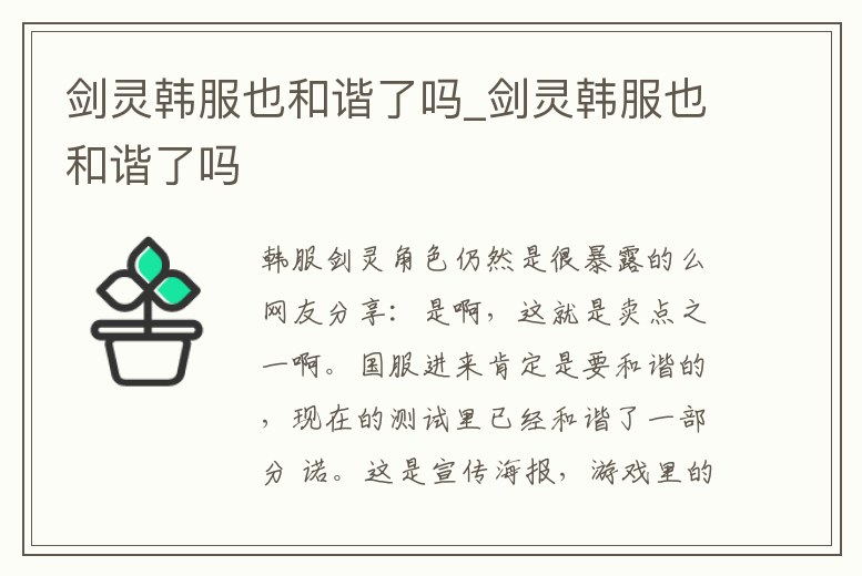劍靈韓服也和諧了嗎_劍靈韓服也和諧了嗎