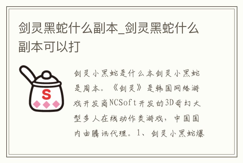 劍靈小黑蛇是周本。《劍靈》是韓國網(wǎng)絡(luò)游戲開發(fā)商NCSoft開發(fā)的3D奇幻大型多人在線動作類游戲,中國國內(nèi)由騰訊代理。