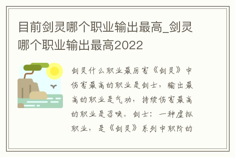 目前劍靈哪個職業輸出最高_劍靈哪個職業輸出最高2022