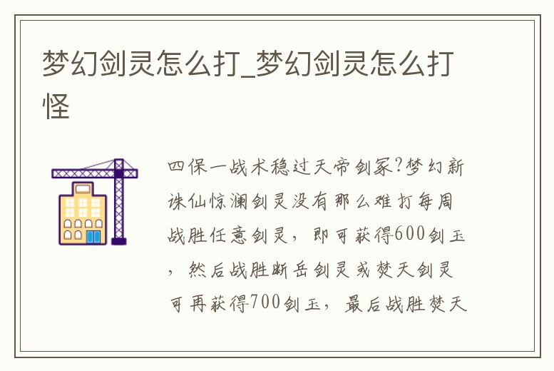 夢幻劍靈怎么打_夢幻劍靈怎么打怪