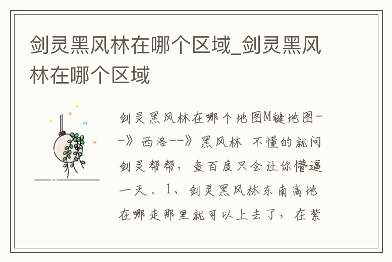 劍靈黑風林在哪個區域_劍靈黑風林在哪個區域
