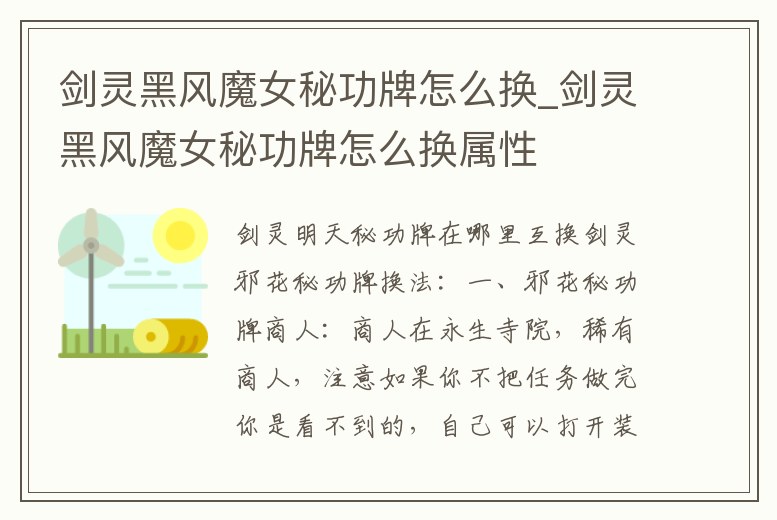 劍靈黑風魔女秘功牌怎么換_劍靈黑風魔女秘功牌怎么換屬性