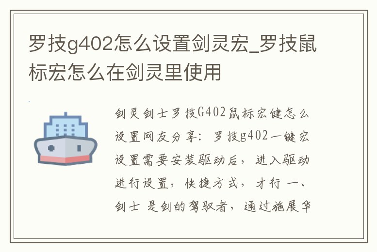 羅技g402怎么設置劍靈宏_羅技鼠標宏怎么在劍靈里使用