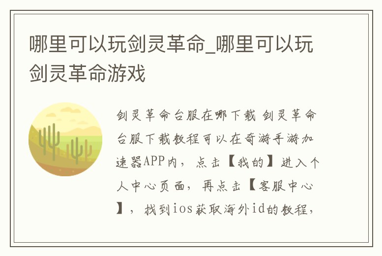 可以在奇游手游加速器APP內,點擊【我的】進入個人中心頁面,再點擊【客服中心】,找到ios獲取海外id的教程,根據教程提示進行下載。客服會一步步告知劍靈革命臺服在哪下載,目前劍靈革命臺服可以使用臺服AppleID或者美服AppleID進。