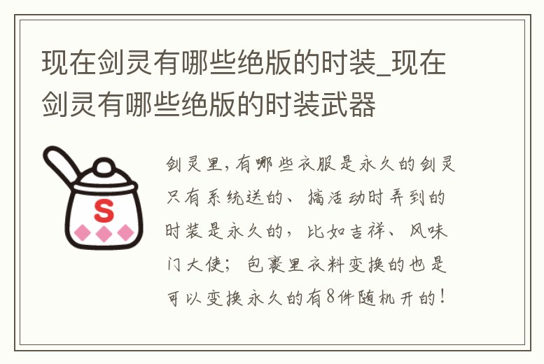 現在劍靈有哪些絕版的時裝_現在劍靈有哪些絕版的時裝武器