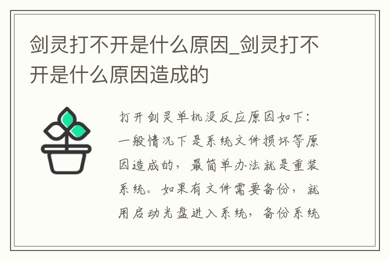 劍靈打不開是什么原因_劍靈打不開是什么原因造成的