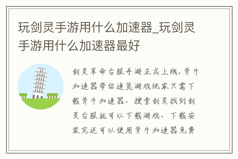玩劍靈手游用什么加速器_玩劍靈手游用什么加速器最好