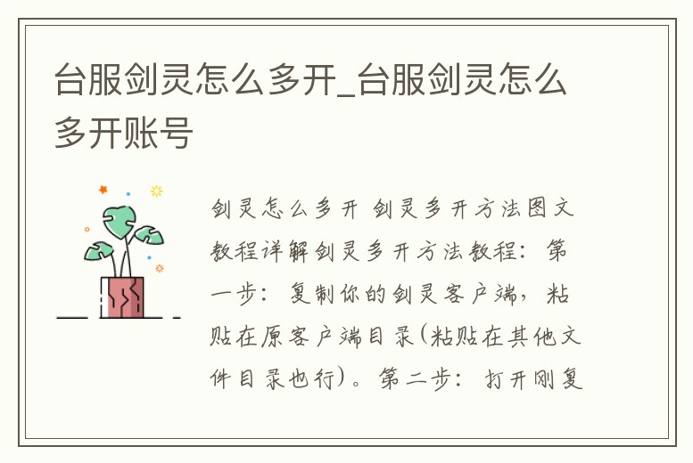 臺服劍靈怎么多開_臺服劍靈怎么多開賬號