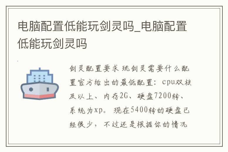 電腦配置低能玩劍靈嗎_電腦配置低能玩劍靈嗎