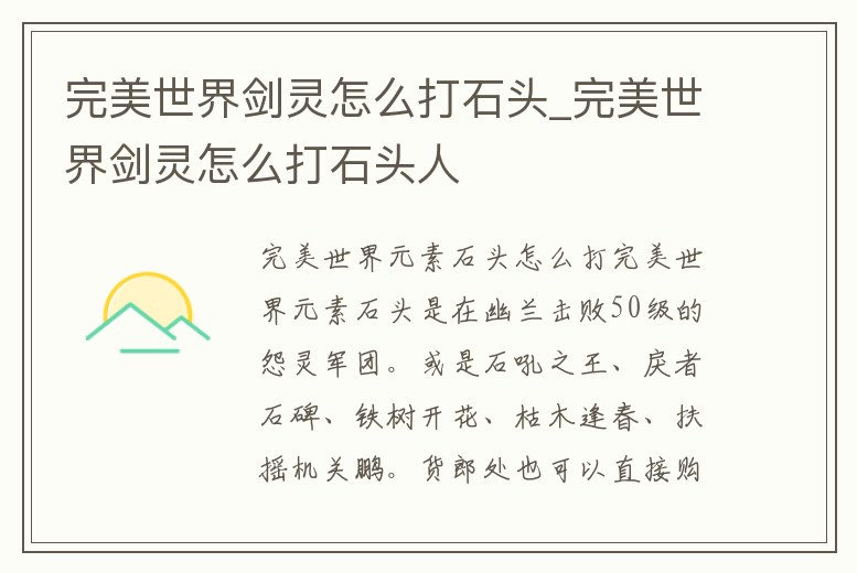 完美世界劍靈怎么打石頭_完美世界劍靈怎么打石頭人