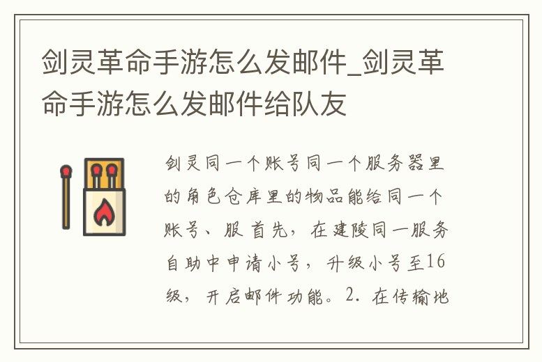 劍靈革命手游怎么發(fā)郵件_劍靈革命手游怎么發(fā)郵件給隊友