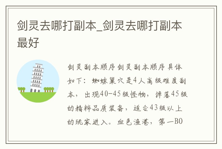 劍靈去哪打副本_劍靈去哪打副本最好