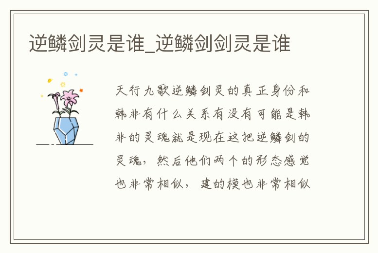 逆鱗劍靈是誰_逆鱗劍劍靈是誰