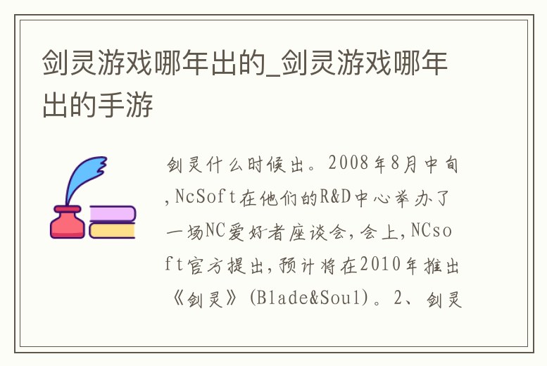 問題九:劍靈什么時候出來 韓國NCSOFT公司旗下的期待作《劍靈》(Blade&Soul)內測將推遲至2010年。NCSOFT公司在8月7日召開的公司上半年財報發布會上宣布《劍靈》的內測推遲。NCSOFT公司曾在今年2月召開的2008年財報發布會上。