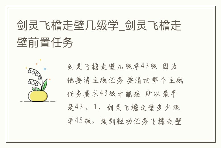 - 劍靈飛檐走壁幾級(jí)學(xué)_劍靈飛檐走壁前置任務(wù)