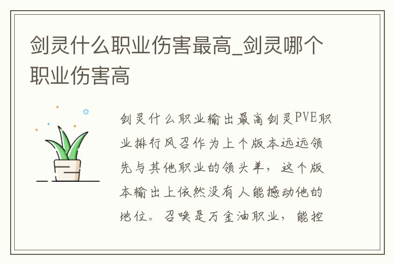 劍靈什么職業傷害最高_劍靈哪個職業傷害高