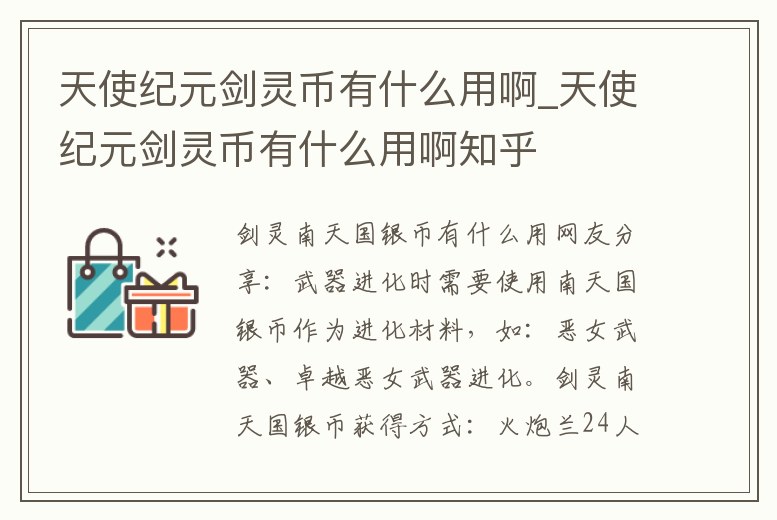 天使紀元劍靈幣有什么用啊_天使紀元劍靈幣有什么用啊知乎