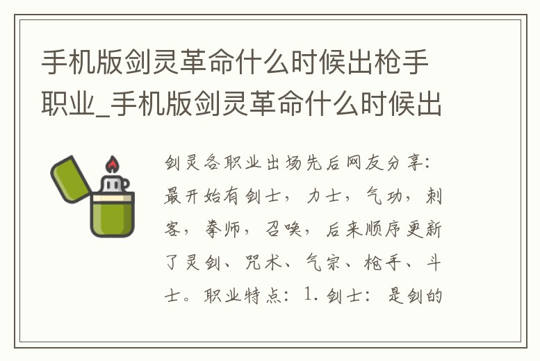 手機版劍靈革命什么時候出槍手職業(yè)_手機版劍靈革命什么時候出槍手職業(yè)裝備