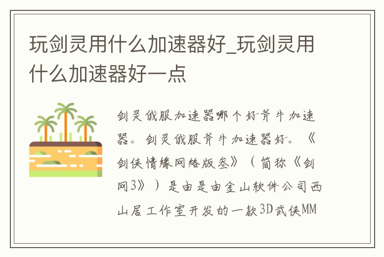 斧牛加速器。劍靈俄服斧牛加速器好。《劍俠情緣網絡版叁》(簡稱《劍網3》)是由是由金山軟件公司西山居工作室開發的一款3D武俠MMORPG(大型多人在線角色扮演)電腦客戶端國產游戲。