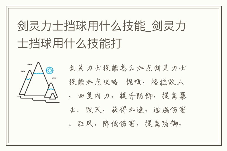 劍靈力士擋球用什么技能_劍靈力士擋球用什么技能打