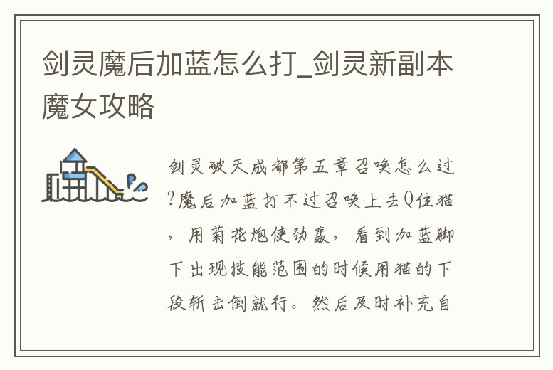 劍靈破天成都第五章召喚怎么過?魔后加藍打不過