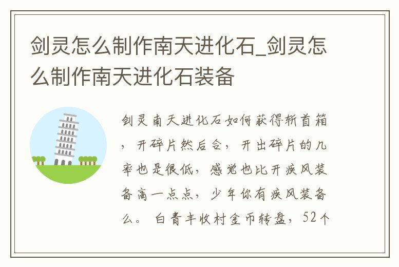 劍靈怎么制作南天進化石_劍靈怎么制作南天進化石裝備