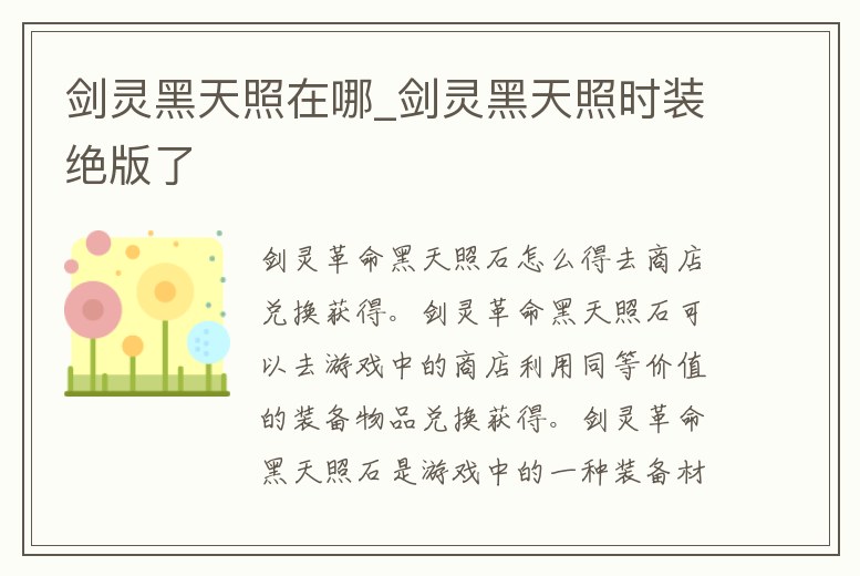 去商店兌換獲得。劍靈革命黑天照石可以去游戲中的商店利用同等價值的裝備物品兌換獲得。劍靈革命黑天照石是游戲中的一種裝備材料,使用它可以使的裝備提升等級和傷害性。