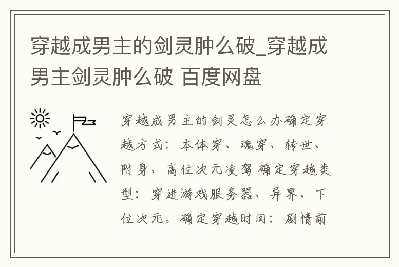 穿越成男主的劍靈腫么破_穿越成男主劍靈腫么破 百度網盤