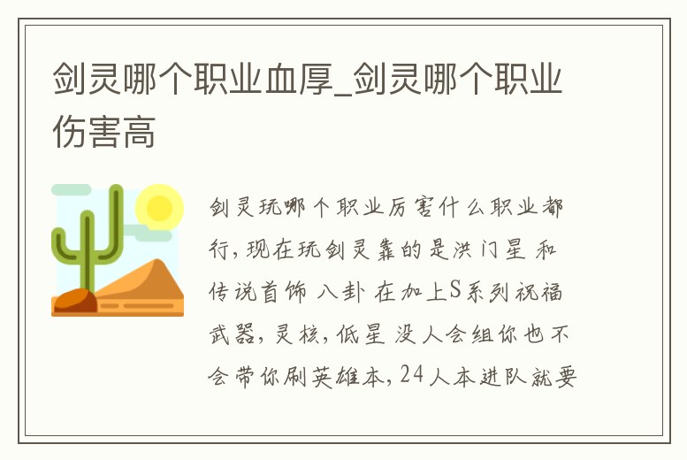 - 劍靈哪個(gè)職業(yè)血厚_劍靈哪個(gè)職業(yè)傷害高