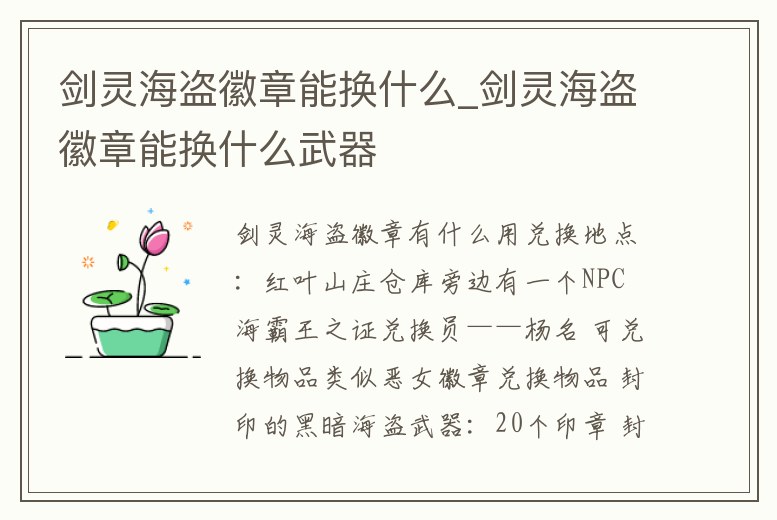 劍靈海盜徽章能換什么_劍靈海盜徽章能換什么武器