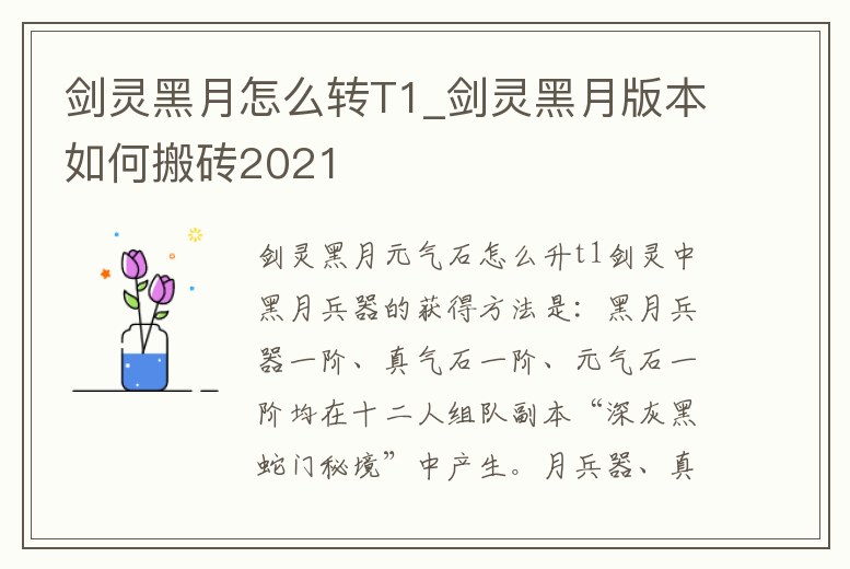 劍靈黑月怎么轉T1_劍靈黑月版本如何搬磚2021