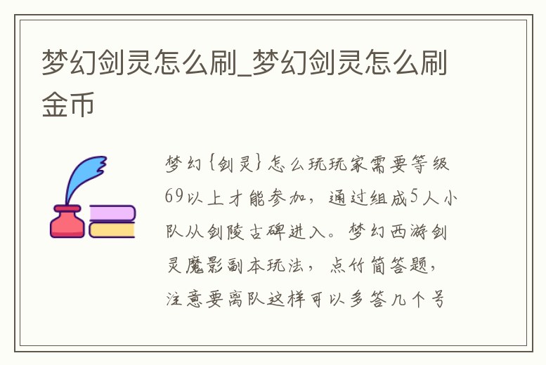 夢幻劍靈怎么刷_夢幻劍靈怎么刷金幣
