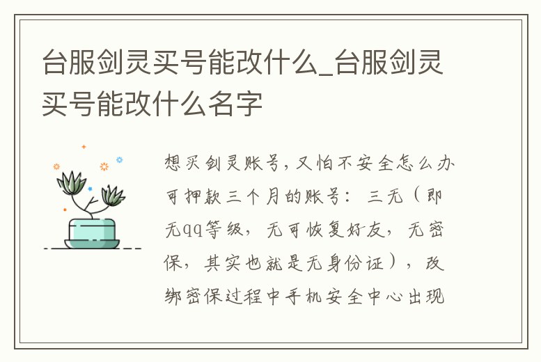 臺服劍靈買號能改什么_臺服劍靈買號能改什么名字
