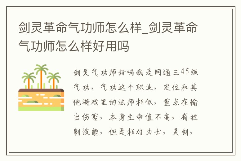 1、劍靈氣功師厲害嗎