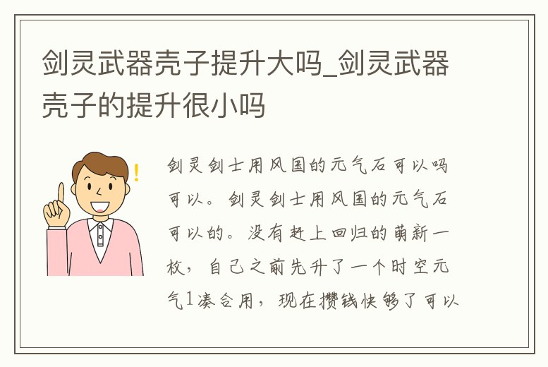 劍靈武器殼子提升大嗎_劍靈武器殼子的提升很小嗎