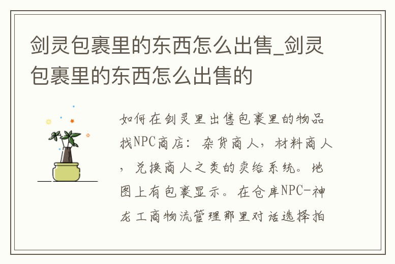 劍靈包裹里的東西怎么出售_劍靈包裹里的東西怎么出售的