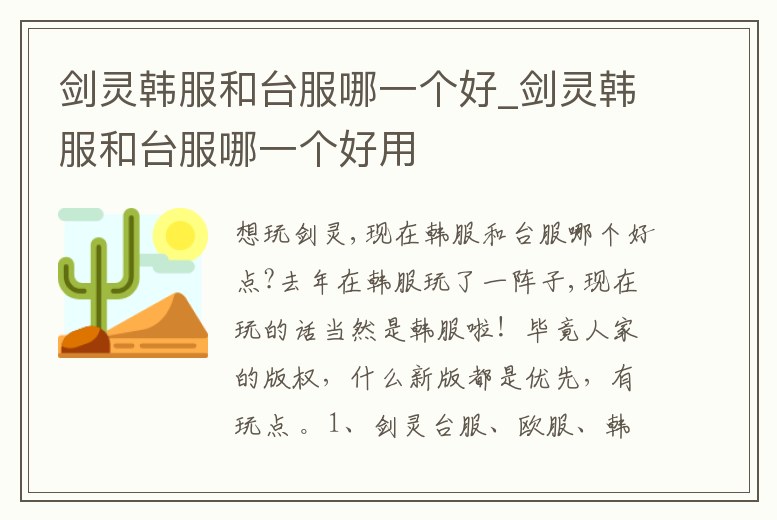 1、劍靈臺(tái)服、歐服、韓服、國(guó)服哪個(gè)服務(wù)器最值得現(xiàn)在開(kāi)始玩