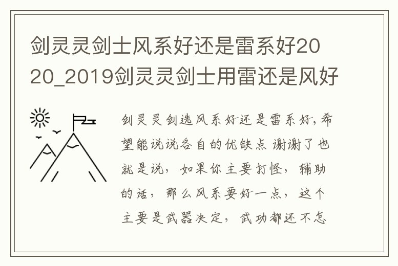 劍靈靈劍士風系好還是雷系好2020_2019劍靈靈劍士用雷還是風好