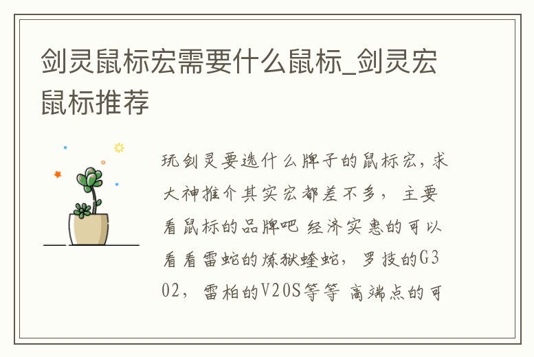 劍靈鼠標宏需要什么鼠標_劍靈宏鼠標推薦