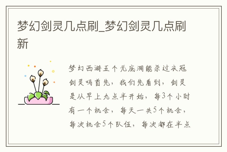 夢幻劍靈幾點刷_夢幻劍靈幾點刷新