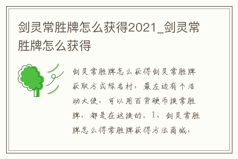 劍靈常勝牌怎么獲得2021_劍靈常勝牌怎么獲得