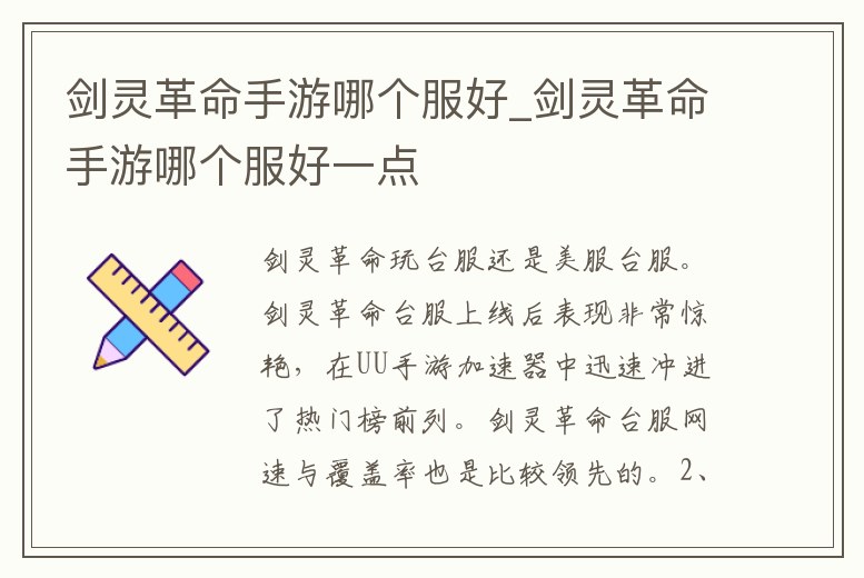 劍靈革命手游哪個服好_劍靈革命手游哪個服好一點